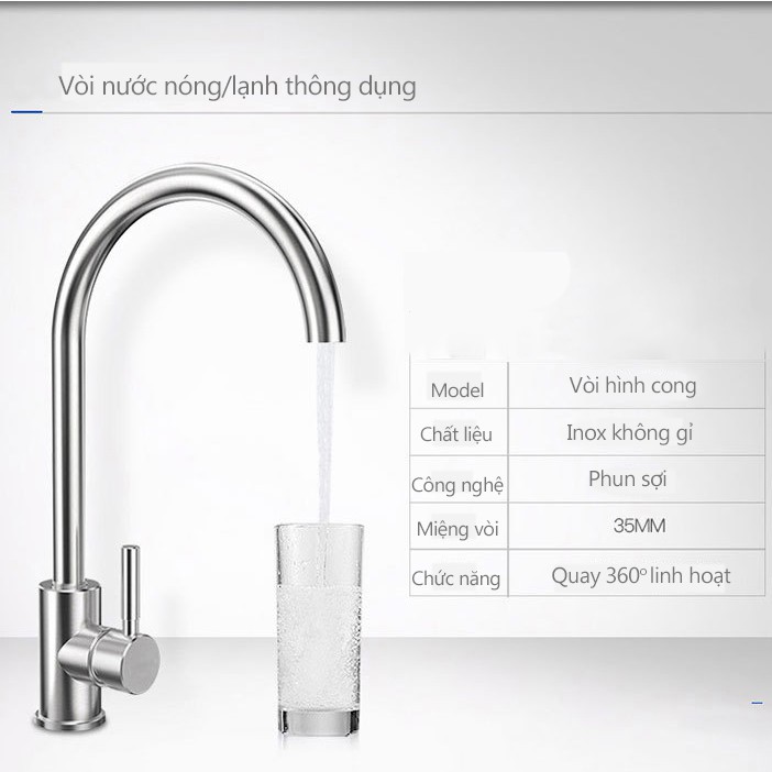Vòi nước inox cong vừa phải, xả nước mạnh, độ bền cao