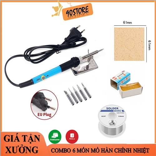 Full bộ 6 món mỏ hàn chỉnh nhiệt cầm tay TQ963 220V-60W Hàn dây điện, tụ điện, chíp...