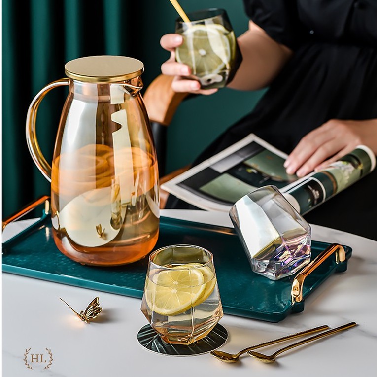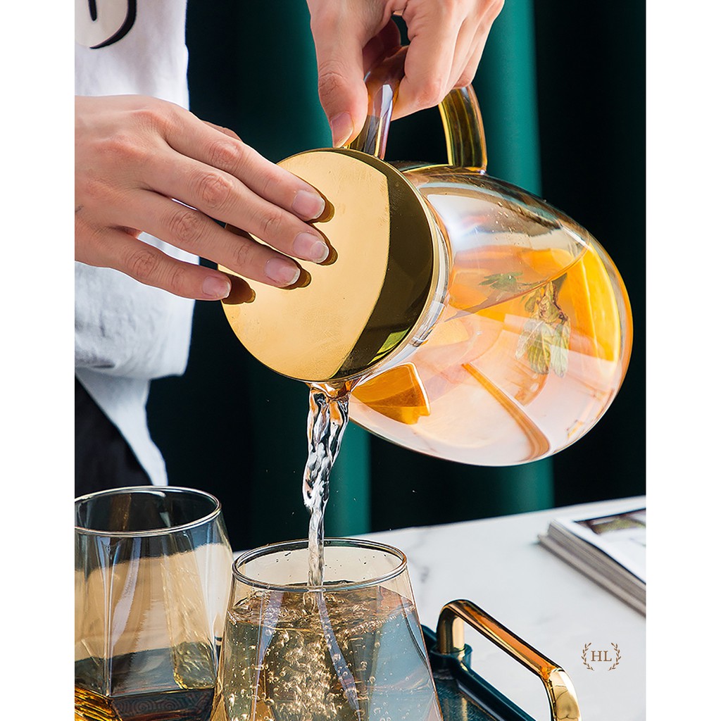 Nhà cửa & Đời sống > Bộ đồ bàn ăn > Bình nước & phụ kiện || Full Bộ Bình Cốc Thủy Tinh Vàng Hổ Phách Borosilicate Siêu Sang | Trọn Bộ Bình Cốc Đun Trực Tiếp Vàng Nắp Inox 2022Còn hàng