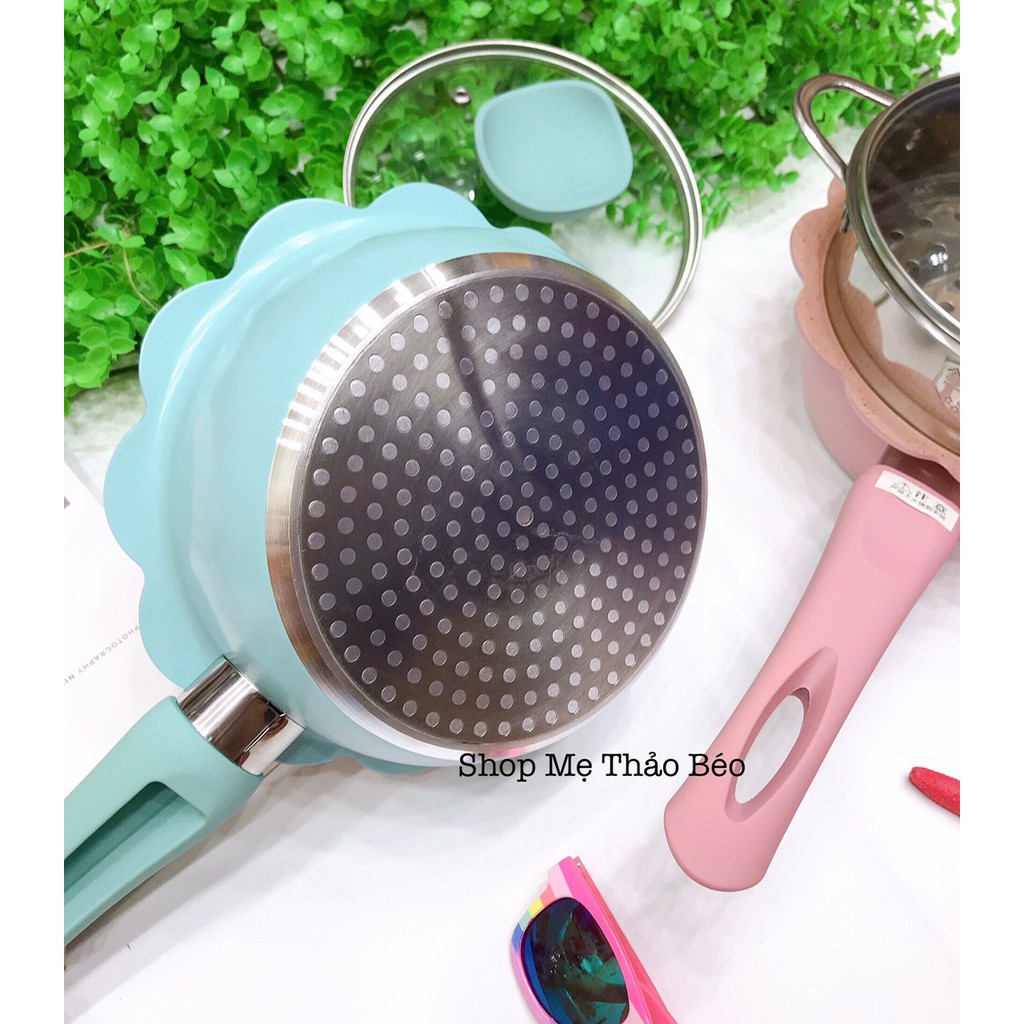 PHỤC VỤ RIÊNG NHU CẦU SÁNG TÁC NGHỆ THUẬT CHO MẸ🌱🌱 BỘ NỒI VÀ CHẢO TRÁNG MEN ĐÁ HÌNH HOA KÈM XỬNG HẤP SIZE 16CM