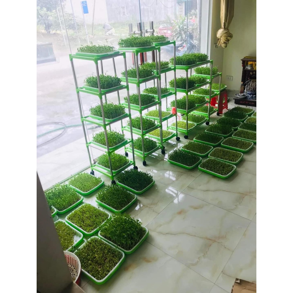 Nhà cửa & Đời sống > Làm vườn > Dụng cụ làm vườn || full bộ trồng rau mầm thủy canh nhiều tầng,khung kệ inox, khay nhựa pp, bánh xe di chuyển, hạt rau mầmCòn hàng