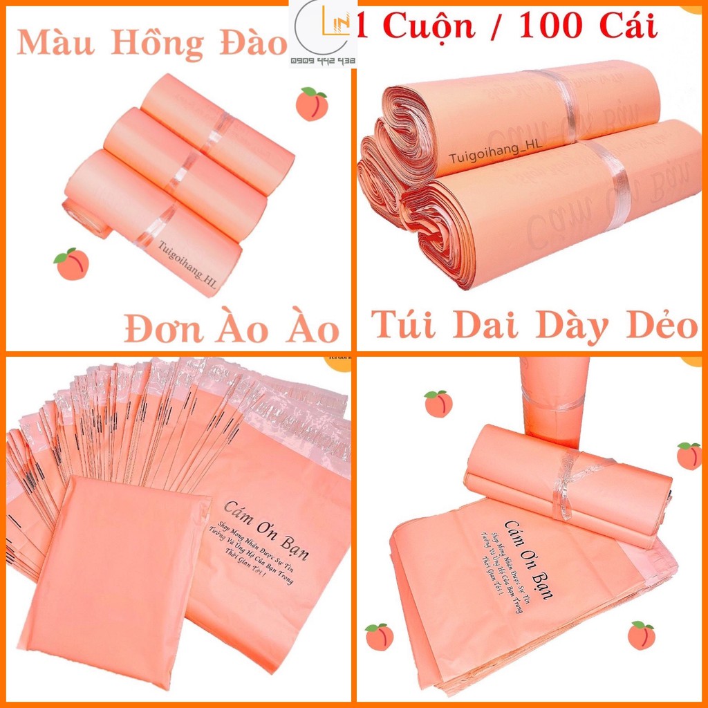 FULL SIZE - Túi Gói Hàng Tiện Lợi Dán Mép In Chữ Cảm Ơn - Túi Đóng Hàng Niêm Phong Màu Hồng Đào