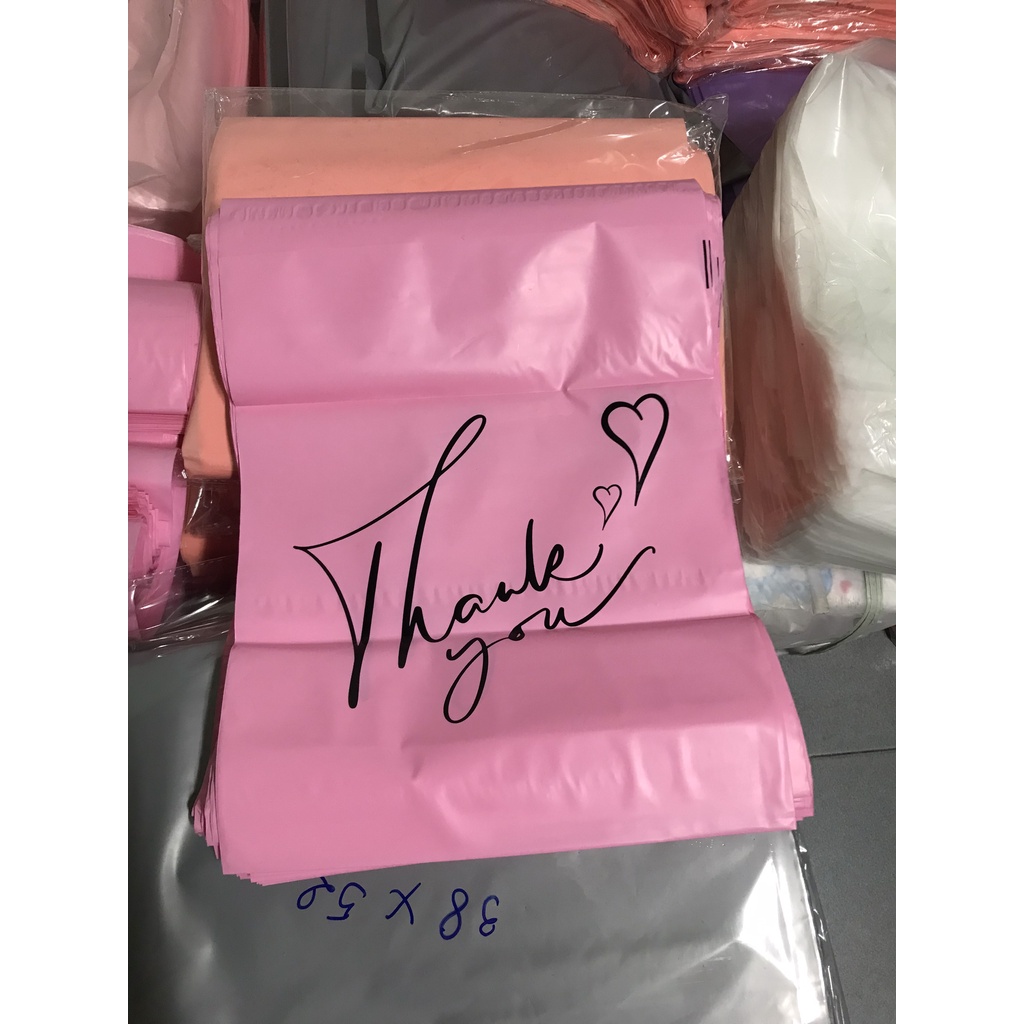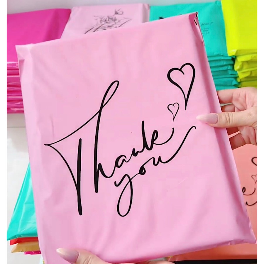 FULL SIZE - Túi Gói Hàng Tiện Lợi Dán Mép In Chữ Thank You Mẫu 2021 - Túi Đóng Hàng Niêm Phong Màu Hồng Pastel
