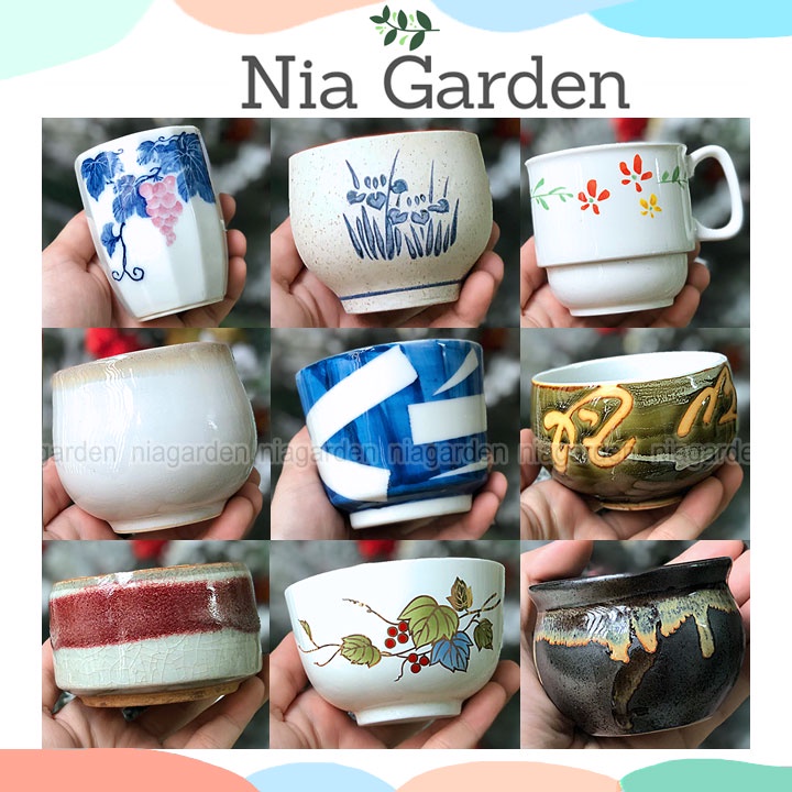 Nhà cửa & Đời sống > Làm vườn > Chậu cây || (G139) Chậu sứ trồng sen đá xương rồng gốm sứ Nhật Bản mini (đã khoan lỗ) Nia Garden GSNCòn hàng