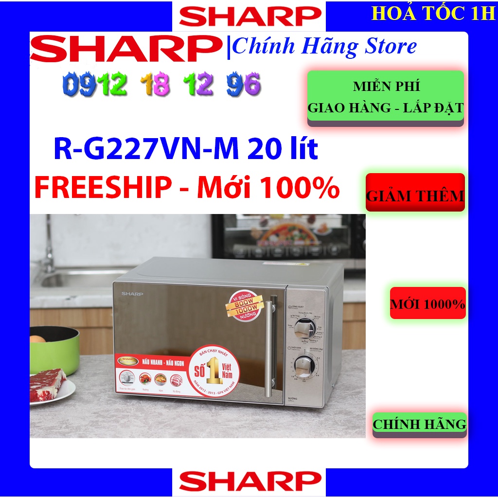 [Mã ELHAMS5 giảm 6% đơn 300K] G227VN _ Lò vi sóng Sharp R-G227VN-M 20 lít, bảo hành chính hãng 12 tháng.