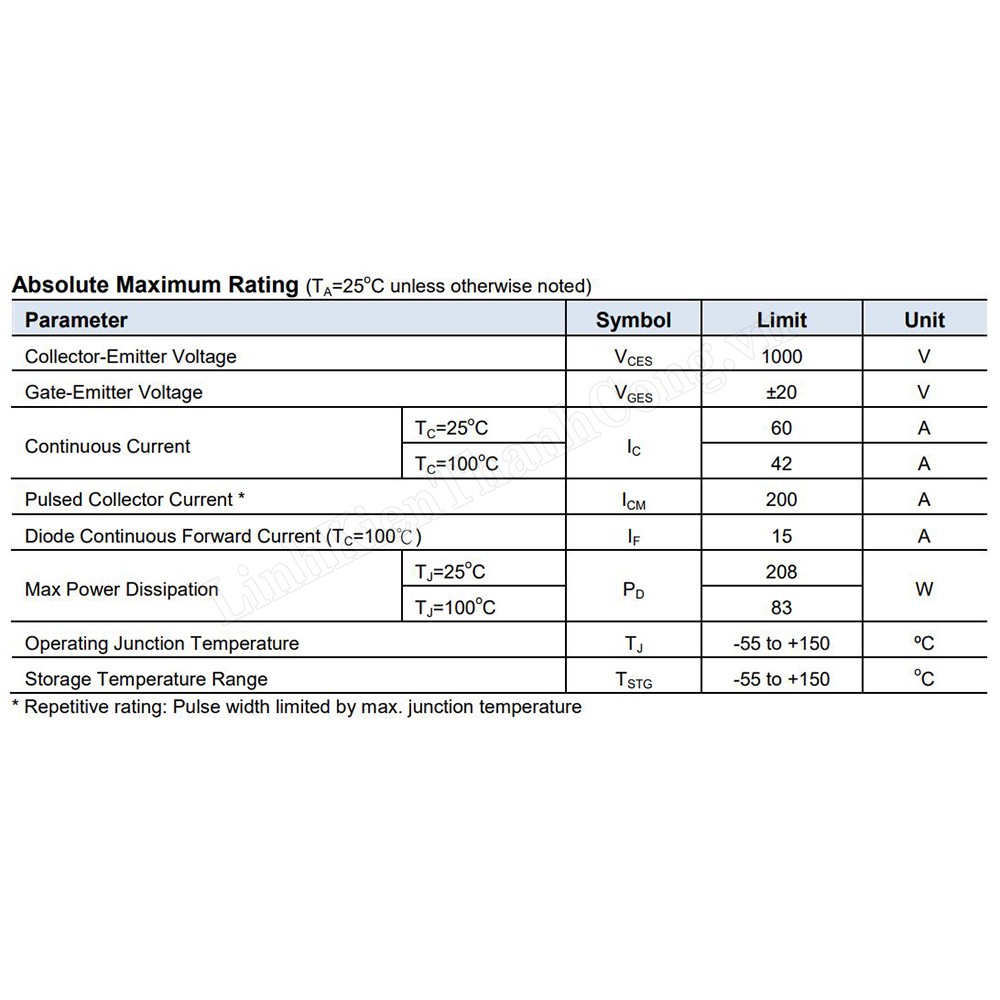 Giới thiệu G60N100 IGBT tháo máy 1000V 60A TO264