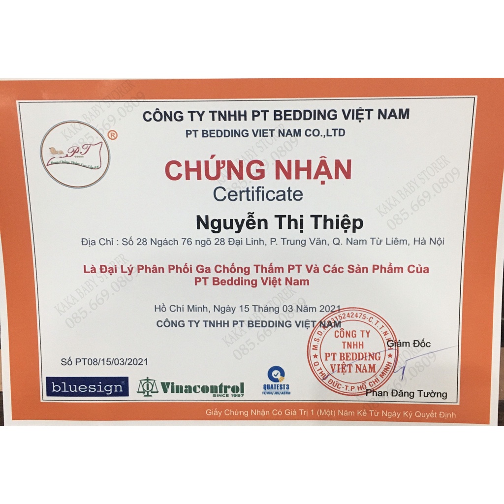 Nhà cửa & Đời sống > Chăn ga gối nệm > Tấm bảo vệ nệm, topper || Ga chống thấm cotton cao cấp chính hãng PT, ga trải giường chống thấm không nóng, bí lưng không sột soạt (được chọn mẫu)Còn hàng