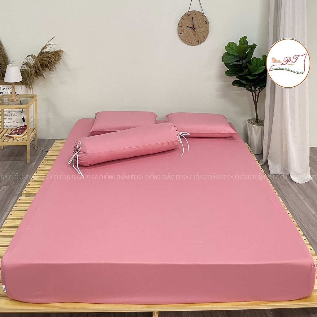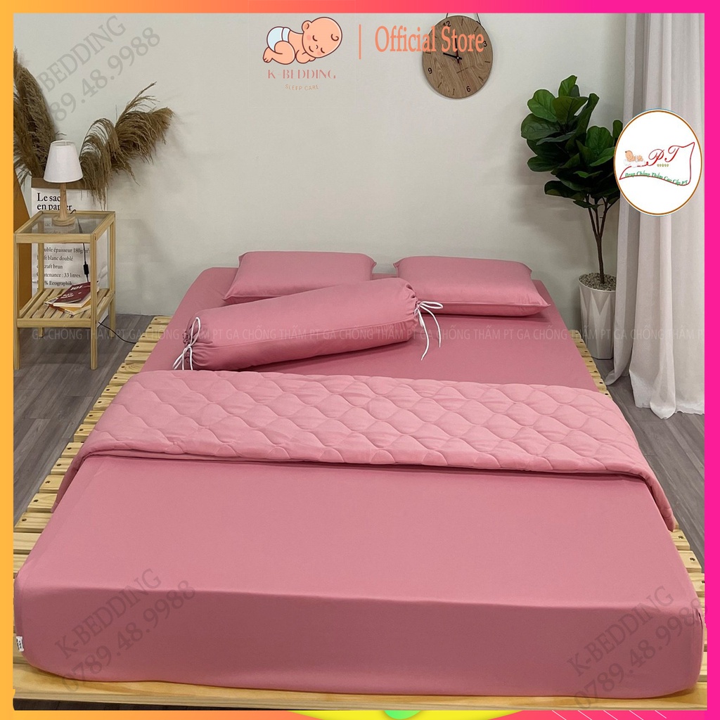 Bộ ga chống thấm cotton cho bé, drap chống thấm nước cao cấp kèm vỏ gối đầu và vỏ gối ôm mềm mịn mát (trơn hồng ruốc)