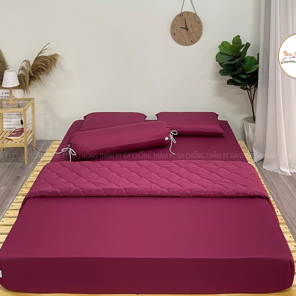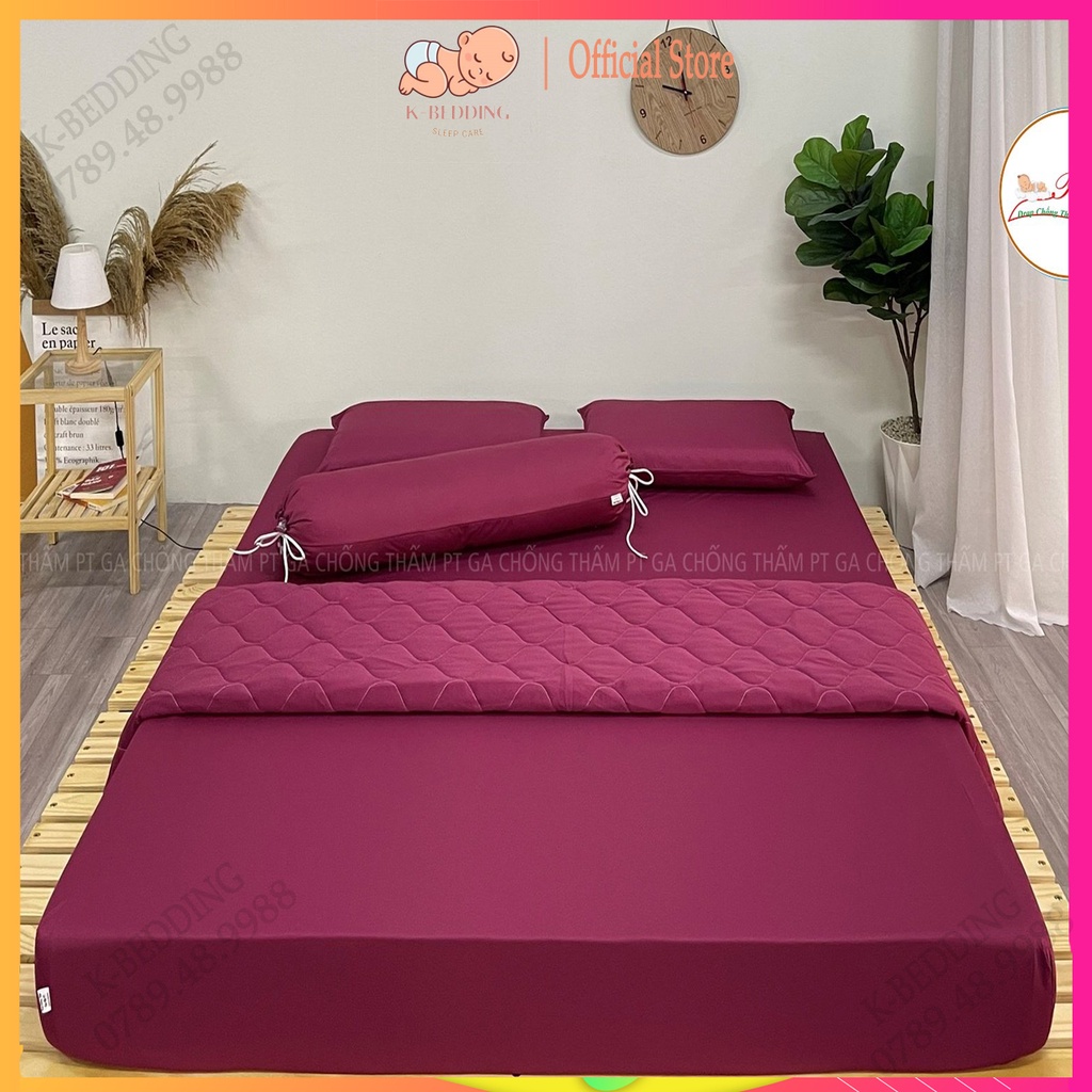 Nhà cửa & Đời sống > Chăn ga gối nệm > Tấm bảo vệ nệm, topper || Bộ ga chống thấm cotton cho bé, drap chống thấm nước cao cấp kèm vỏ gối đầu và vỏ gối ôm mềm mịn mát (trơn nho)Còn hàng
