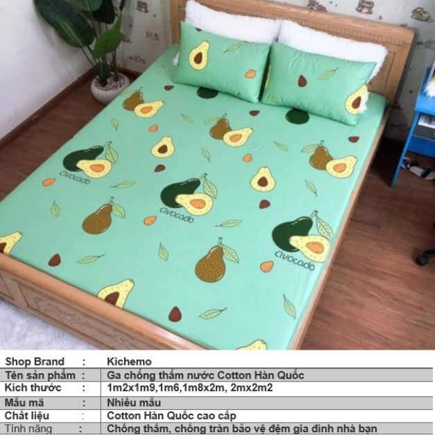 Lưu ý khi đặt hàng :- Ga chống thấm cotton phẩm phù hợp với đệm có độ dày < 12cm