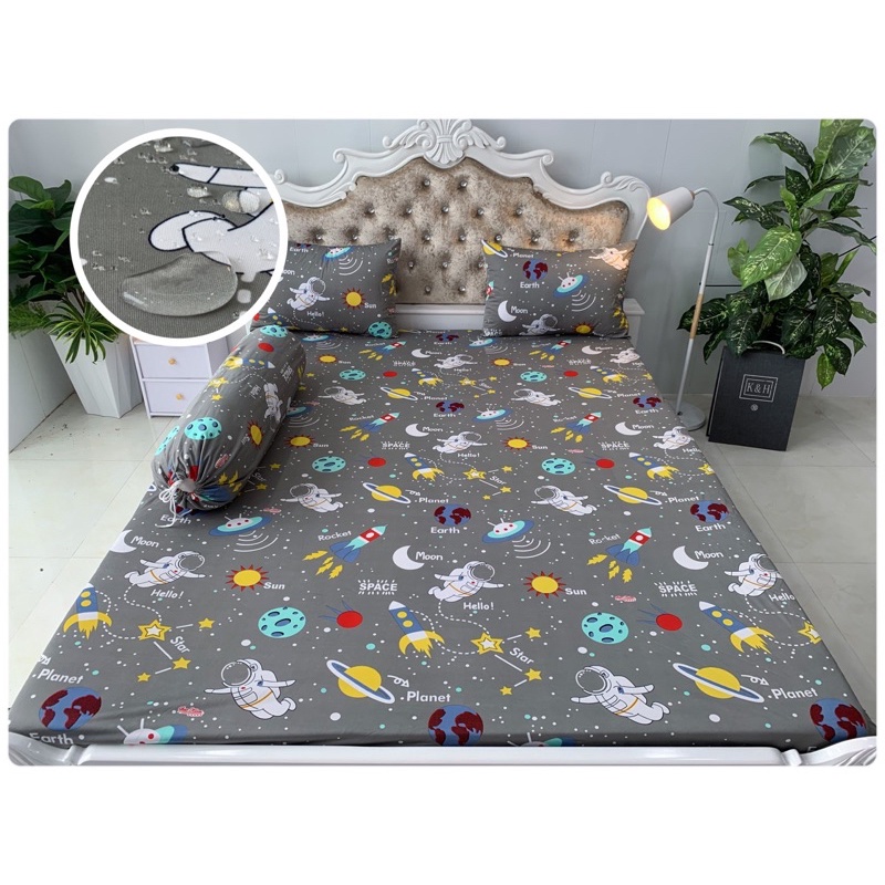 - Được dệt bằng chất liệu vải thun cotton Hàn Quốc cao cấp, vải lụa tổng hợp chống thấm 100% không bí, đảm bảo đối lưu không khí và rất ít gây sột soạt khi di chuyển trên giường.