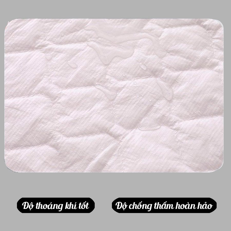 - Bề mặt vải cotton trần bông cao cấp, êm dịu với làn da bé, KHÔNG SỘT SOẠT NHƯ CHỐNG THẤM THƯỜNG