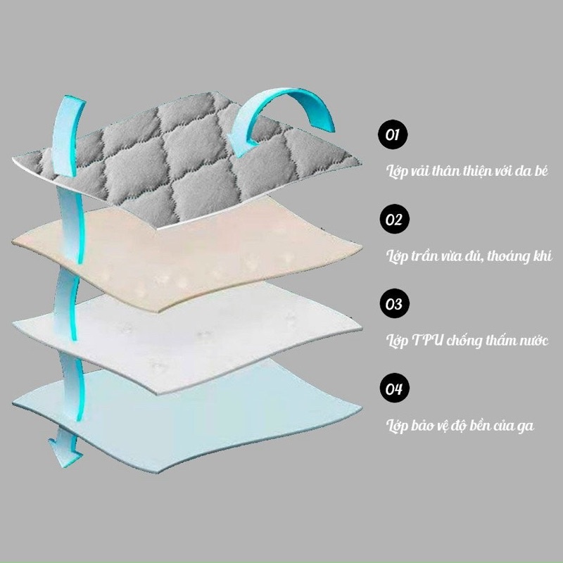 🍃 - Bề mặt vải cotton trần bông cao cấp, êm dịu với làn da bé, KHÔNG SỘT SOẠT NHƯ CHỐNG THẤM THƯỜNG