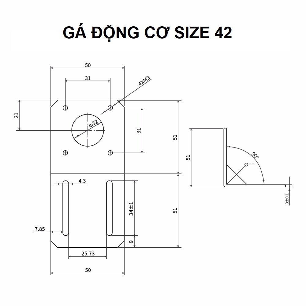 Để động cơ bước size 42 được chắc chắn tại vị trí, ta sử dụng gá động cơ này.
