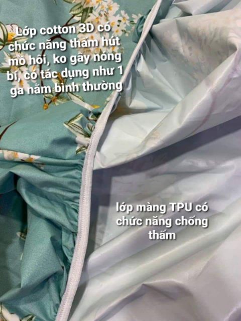 👉Ga chống thấm cotton 3D làm được điều mà các loại ga khác k làm được bởi được cấu tạo 2 mặt (2 lớp):