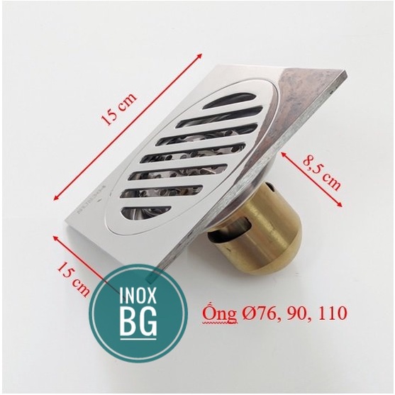 Ga thoát sàn 15x15 cm lõi đồng dùng cho ống 76,90,110 ngăn mùi, chống côn trùng