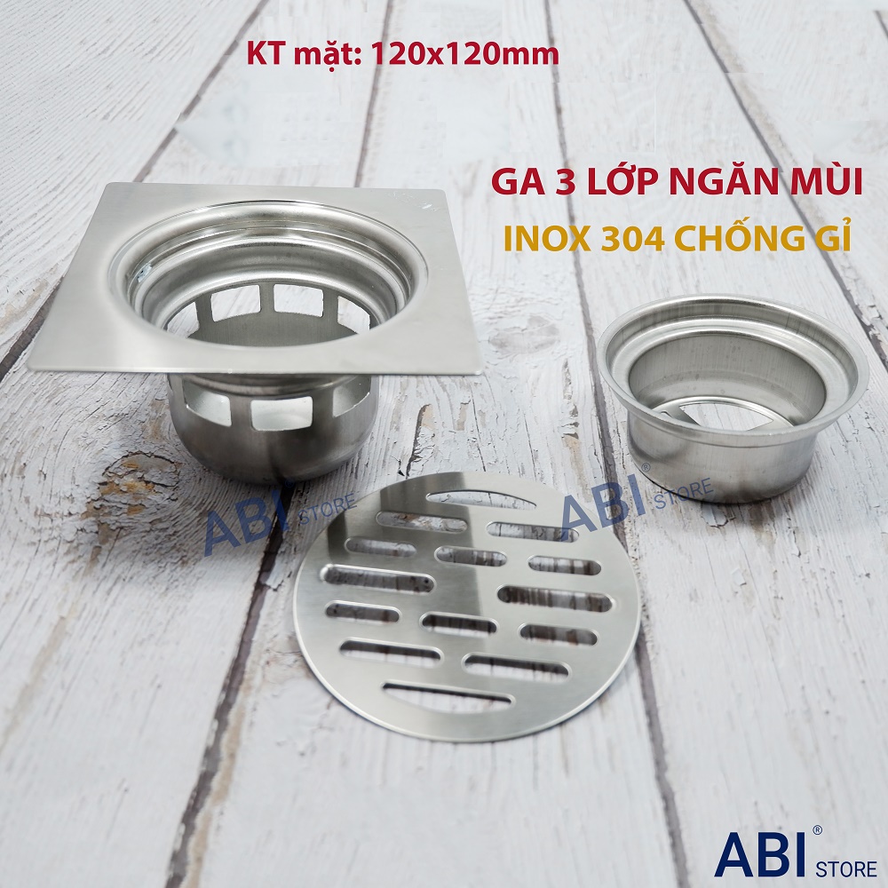 Ga thoát sàn inox 304 chống gỉ 3 lớp, phễu thu nước chống mùi nhà tắm cao cấp d76,d90,d110Chất liệu inox 304 cao cấp chống han gỉ
