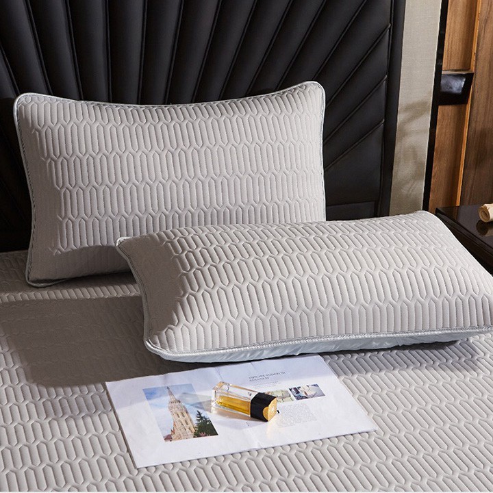 Ga trải giường chiếu điều hòa cao cấp 1m5, 1m8 x 2m và hai vỏ gối cao su non Tencel Latex siêu êm hàng loại 1 (Tặng túi)