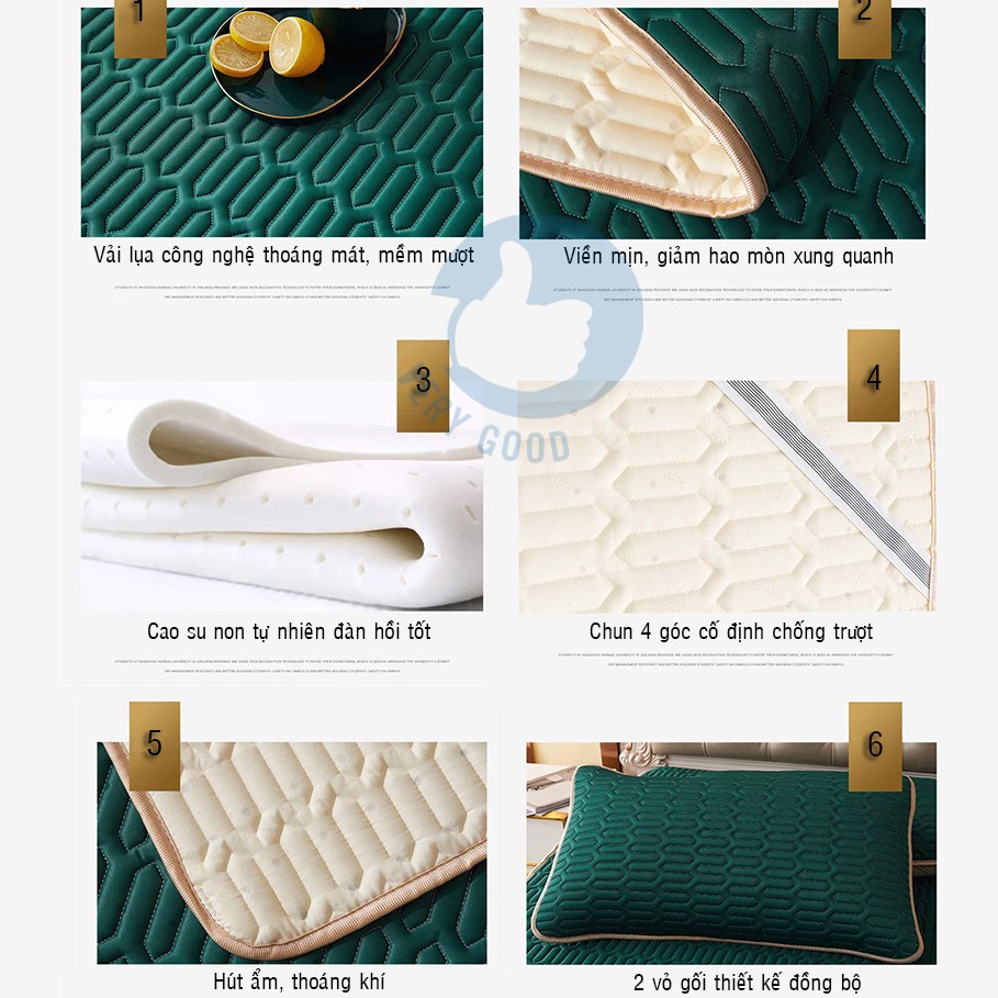 Ga trải giường chiếu điều hòa cao cấp tặng kèm hai vỏ gối cao su non siêu êm mát mùa hè ấm mùa đông:✔ Protein trong cao su tự nhiên có tác dụng ức chế mầm bệnh, ngăn ngừa vi khuẩn, bảo vệ môi trường