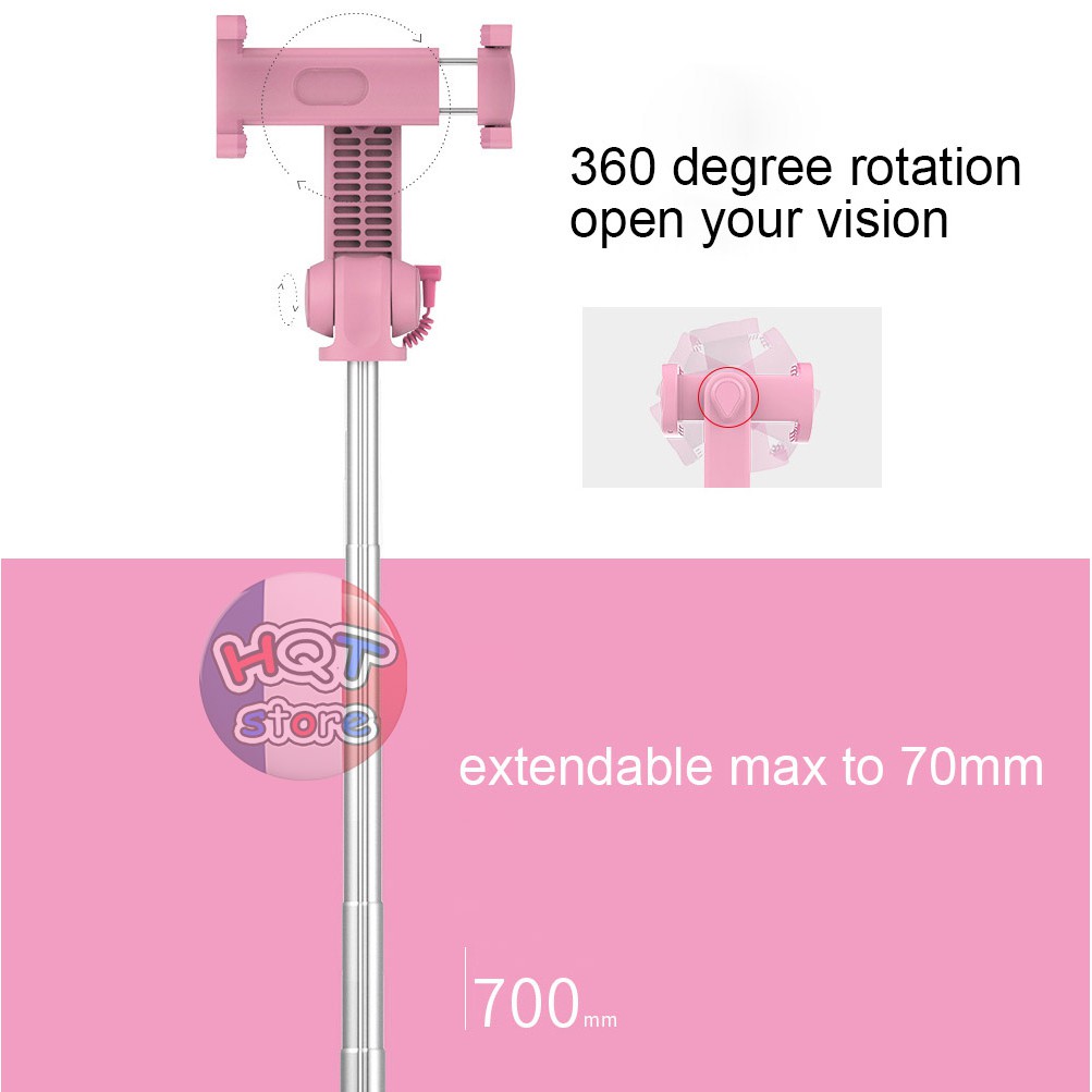 - Có thể kéo dài ra để làm gậy selfie (chiều dài 70 cm)