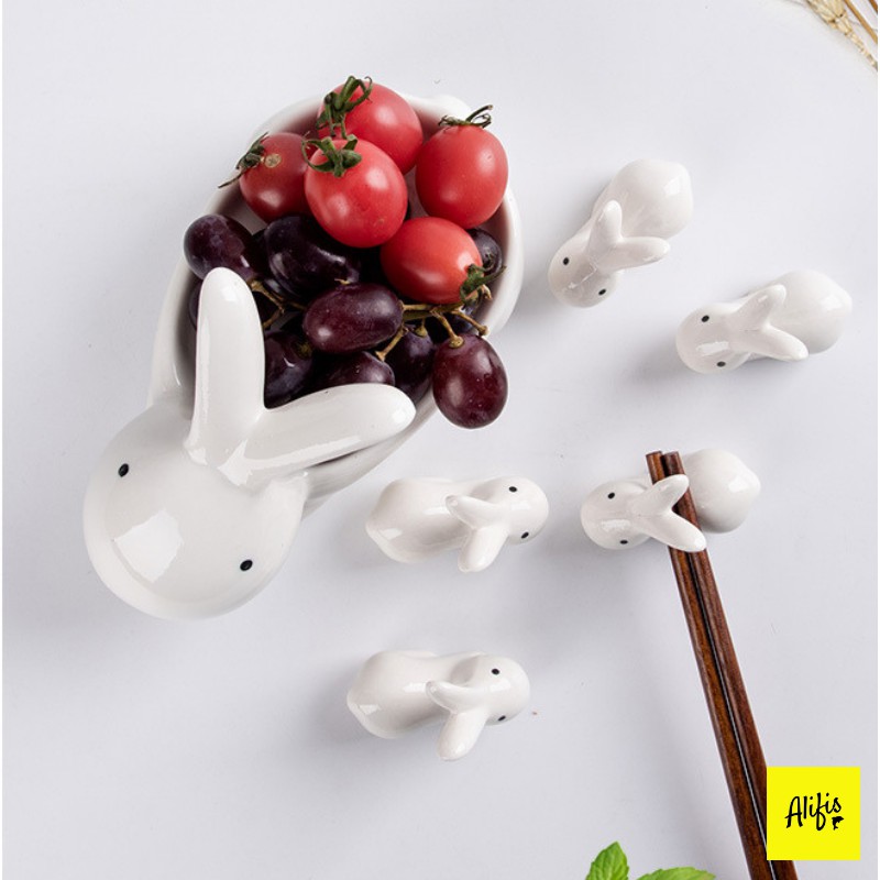 Gác đũa, bộ 5 gác đũa kèm bát sứ hình động vật đáng yêu – phụ kiện bàn ăn