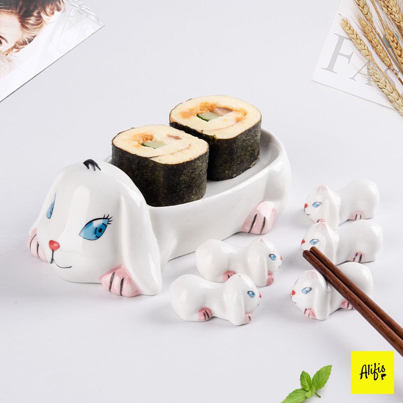 Giới thiệu Gác đũa, bộ 5 gác đũa kèm bát sứ hình động vật đáng yêu – phụ kiện bàn ăn