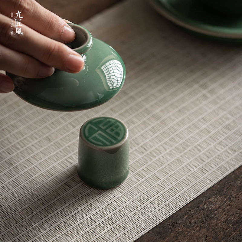 Nhà cửa & Đời sống > Dụng cụ nhà bếp > Dụng cụ pha trà, cà phê || Gác nắp ấm trà, Ấm Tử Sa bằng Sứ Men Ngọc Lục Bảo Họa Tiết Khắc Chìm Đẹp MắtCòn hàng
