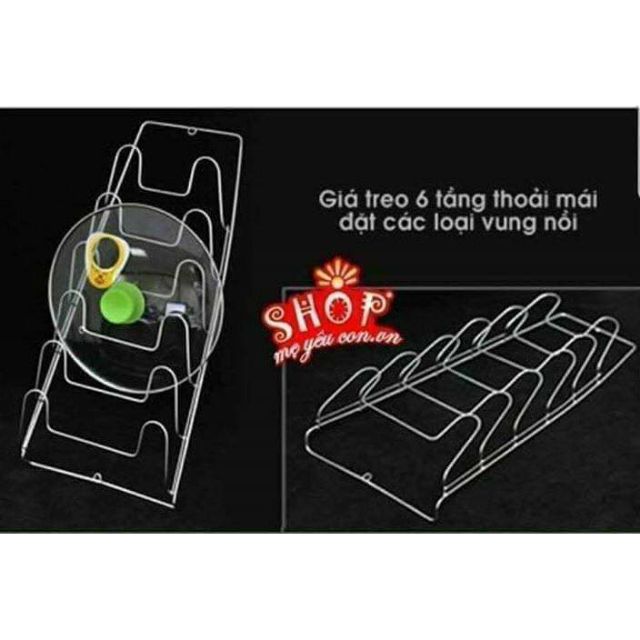 🍀Giá treo 6 tầng cho phép đặt thoải mái các loại vung nồi, không lo mất.