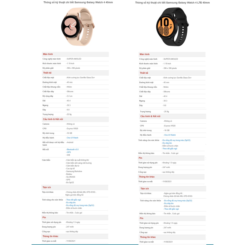 - Tiện ích khác : Chứng nhận độ bền MIL-STD-810G,Nghe gọi trên đồng hồ