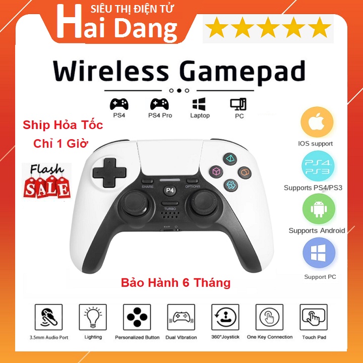 Tay Game P4 Pro Không Dây Loại Tốt, Chơi Game PC - PS4 - Laptop, Chơi PES, Full Skill FO4 - Dual Rung - Chơi Trên ĐT