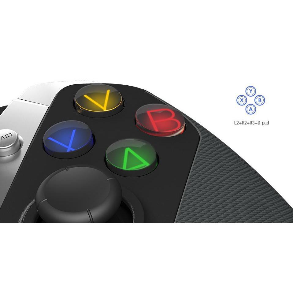 Việc nối với Dpad giúp bạn dễ dàng phân biệt giữa 8 điểm la bàn cùng với joystick 360 độ cho bạn trải nghiệm sự chính xác cực kì đến từng chuyển động. Bên cạnh đó, các nút chức năng nhanh chóng có thể chuyển đổi cho nhau mà không cần mất quá nhiều sức.Chế độ nhạy được kích hoạt theo đó cho phép bạn thực hiện các cú đua tuyệt vời trong các mảng game đua xe. Bạn cũng có thể nhấn Clear + L3 cùng lúc để đổi vị trí phím điều khiển Joystick và Dpad để chơi các trò chơi theo ý muốn.