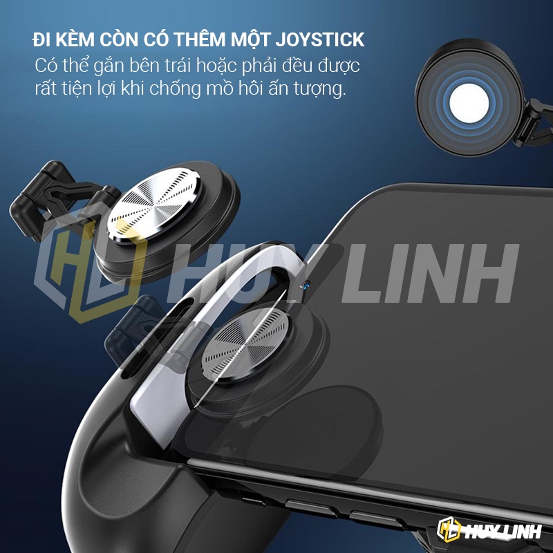 - Công dụng: Sò lạnh tản nhiệt, Giá đỡ điện thoại, Báng tay cầm chơi game, Nút Joystick cảm ứng chống mồ hôi