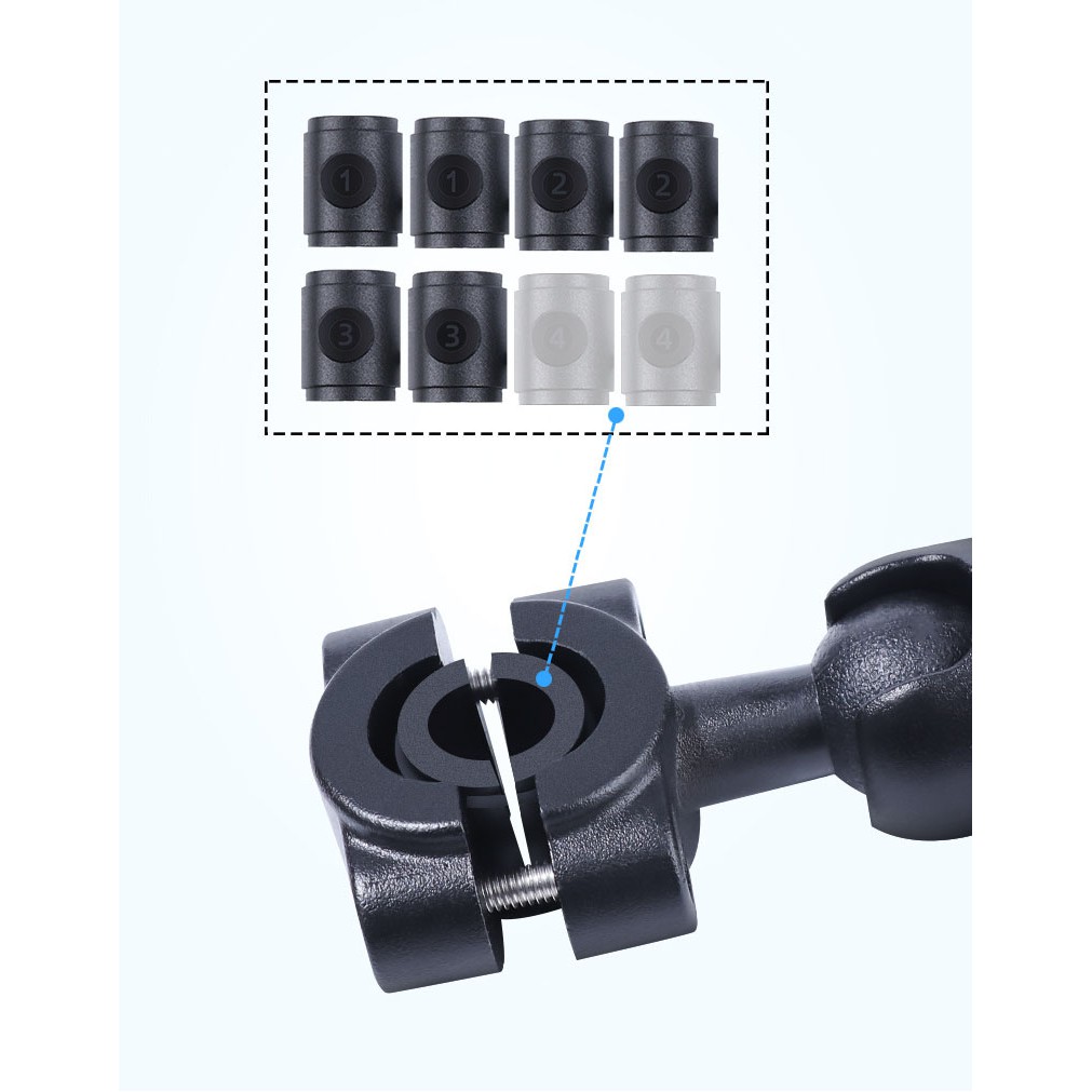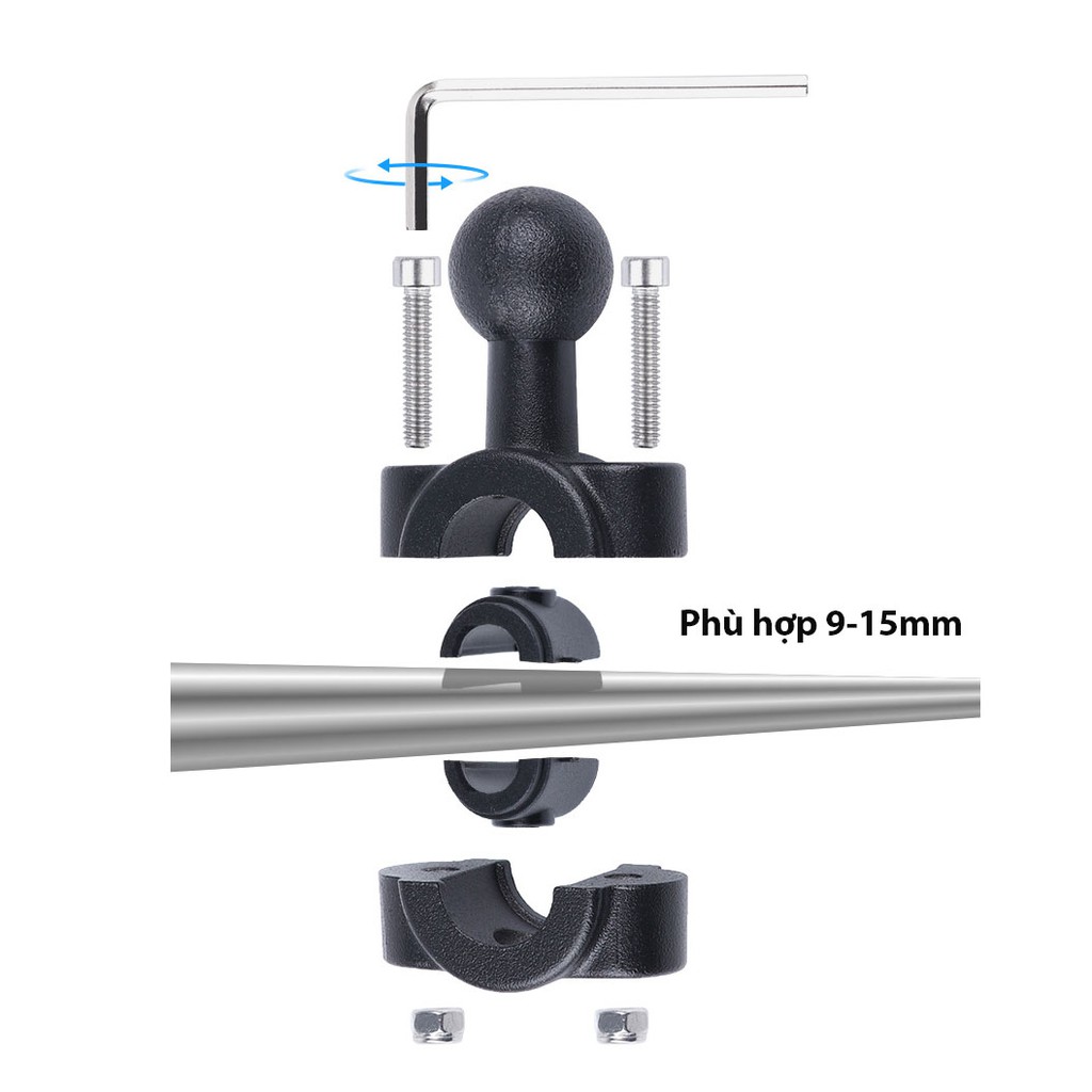 Bộ phụ kiện gắn GoPro và Actiopn Cam lên thanh kính chiếu hậu xe máy hoặc thanh cố định gốc đầu trên xe hơi. Chất liệu hợp kim và nhựa ABS, tuỳ chỉnh các góc quay 360 độ tiện lợi.Phần pat gắn vào thân kính chiếu hậu có tuỳ chỉnh từ 9mm tới 15mm kèm bộ đệm để thay đổi phù hợp với kích thước thân cây gắn.