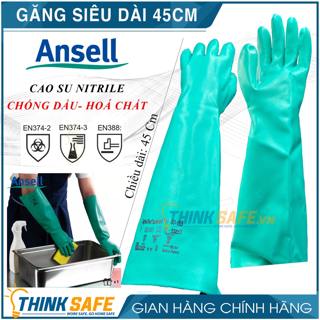 Găng cao su chống hóa chất Ansell Thinksafe, bao tay dài tới cánh tay, lao động và y tế, chống xăng dầu, đa dụng 37-185