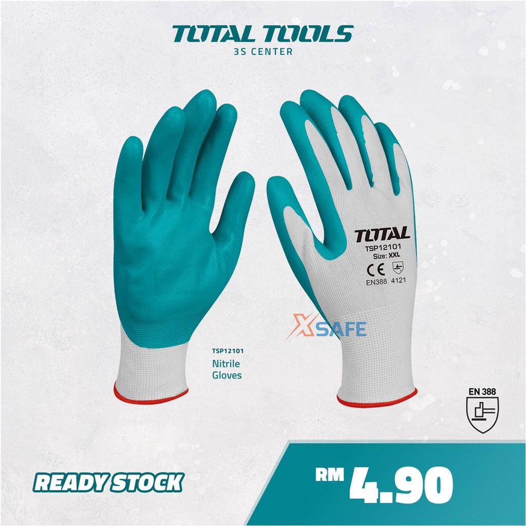Nhà cửa & Đời sống > Dụng cụ & Thiết bị tiện ích > Găng tay, kính bảo hộ & mặt nạ || Găng tay bảo hộ chống dầu TOTAL TSP12101 bao tay bảo hộ lao động phủ nitrile chống trơn trượt, dầu mỡ, nhớt, sơn phunCòn hàng