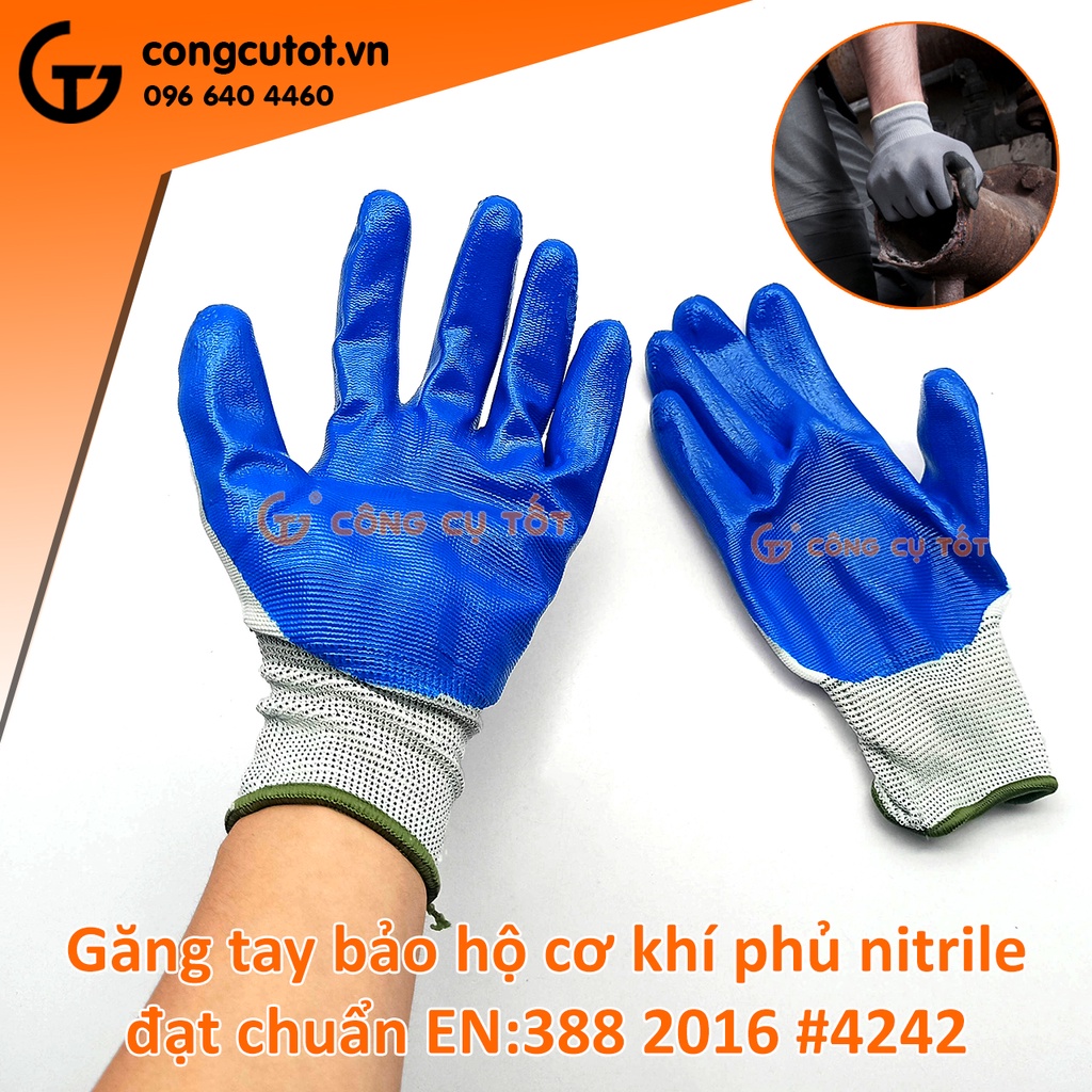 Nhà cửa & Đời sống > Dụng cụ & Thiết bị tiện ích > Găng tay, kính bảo hộ & mặt nạ || Găng tay bảo hộ cơ khí phủ nhựa Nitrile đạt chuẩn EN 388:2016 #4242Còn hàng