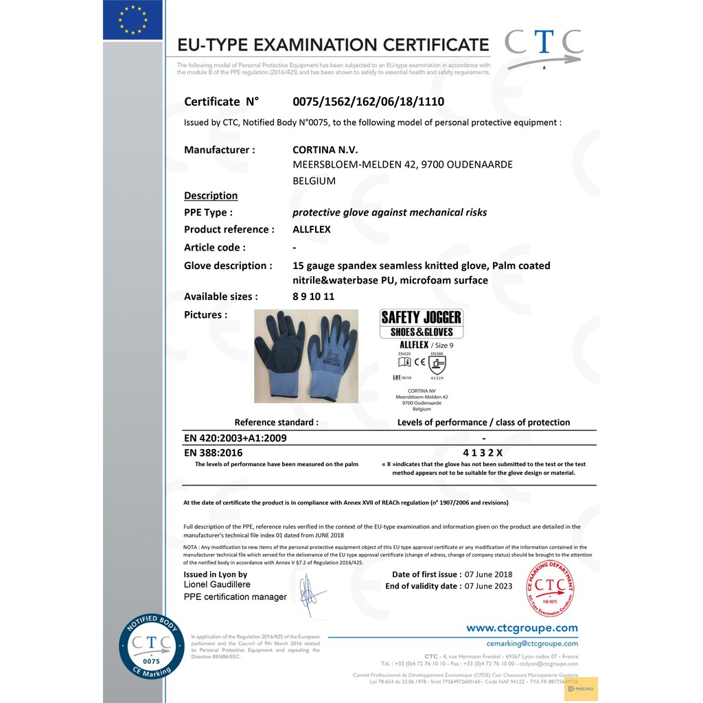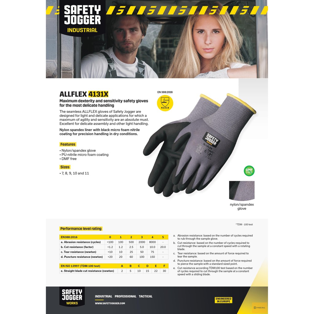 GĂNG TAY BẢO HỘ ĐA NĂNG JOGGER ALLFLEX CHỐNG DÂU HÓA CHẤT TIÊU CHUẨN EN 388:2003 (4,1,3,2)THÔNG TIN SẢN PHẨM :