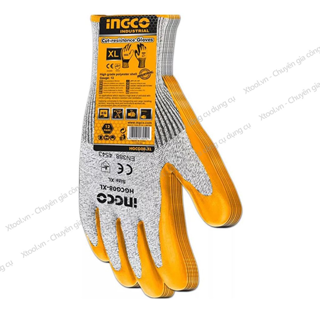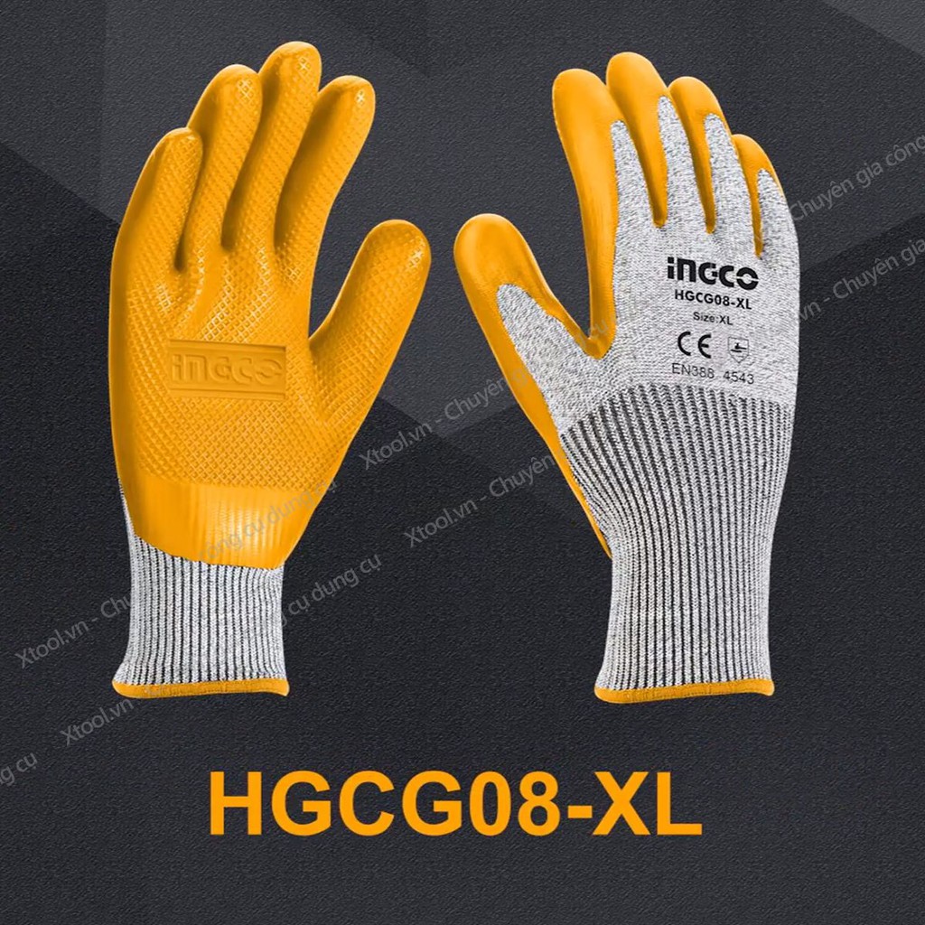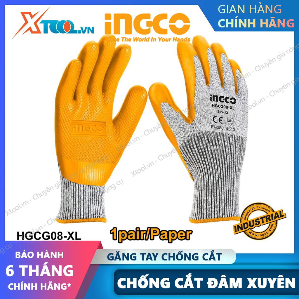 Nhà cửa & Đời sống > Dụng cụ & Thiết bị tiện ích > Găng tay, kính bảo hộ & mặt nạ || Găng tay bảo hộ lao động cao cấp INGCO HGCG08 bao tay bảo hộ đa năng, chống cắt, mài mòn, đâm xuyên, trơn trượt, xé ráchCòn hàng