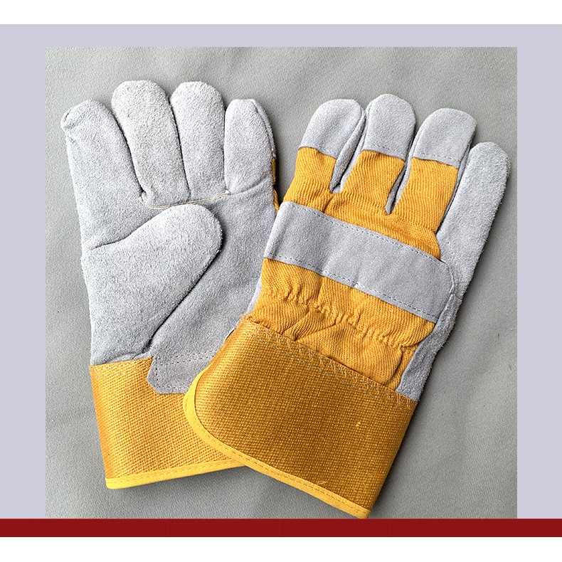 Găng tay bảo hộ lao động chất da bò dày hơn, bền hơn (màu vàng-trắng)