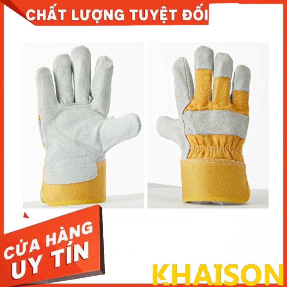 Nhà cửa & Đời sống > Dụng cụ & Thiết bị tiện ích > Găng tay, kính bảo hộ & mặt nạ || Găng tay bảo hộ lao động chất da bò dày hơn, bền hơn (màu vàng-trắng)Còn hàng