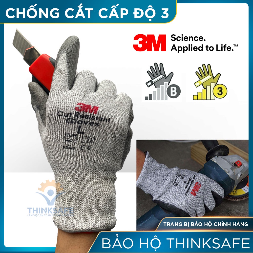Găng tay bảo hộ lao động chống cắt 3M Thinksafe, Bao tay cấp độ 3, chống cắt tôn kính ôm tay thao tác linh hoạt - Lv3