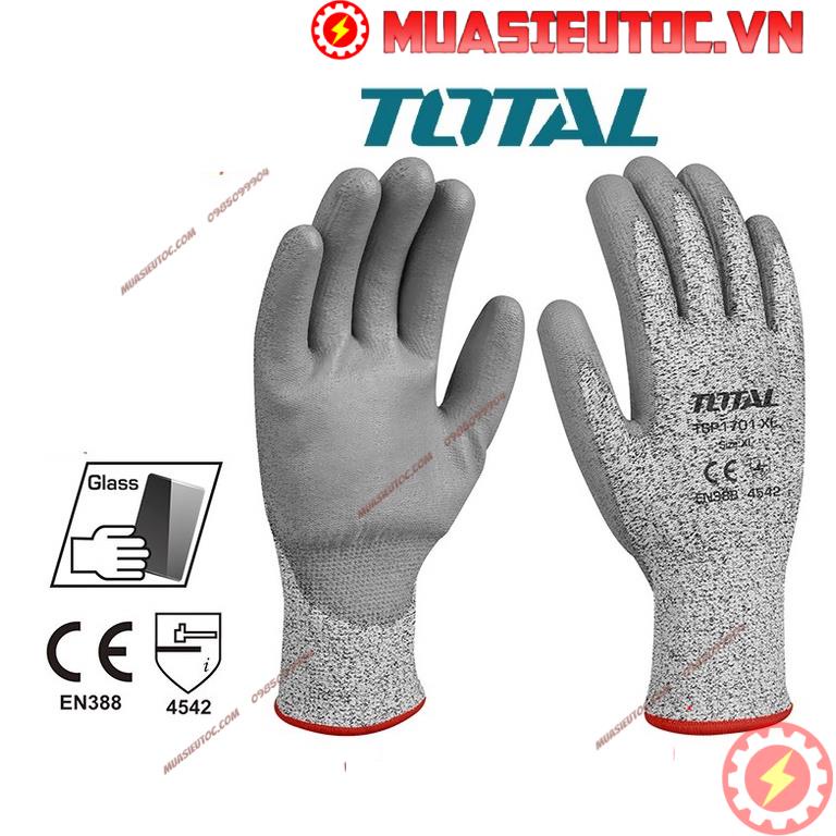 Nhà cửa & Đời sống > Dụng cụ & Thiết bị tiện ích > Găng tay, kính bảo hộ & mặt nạ || Găng tay bảo hộ lao động chống cắt cấp độ 5 có tráng PU - Chống tĩnh điện TOTAL TSP1701 XL công trình sắt nhọn cắt gỗCòn hàng