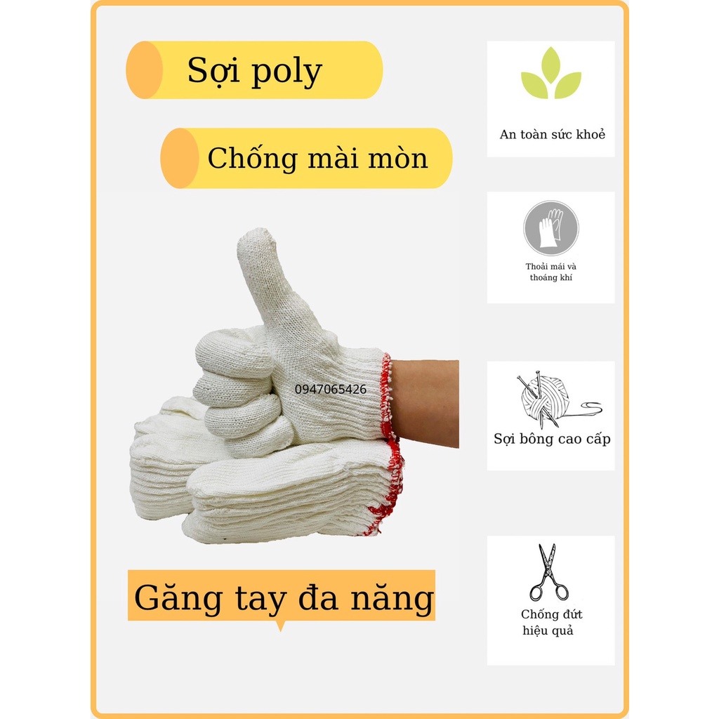 Nhà cửa & Đời sống > Dụng cụ & Thiết bị tiện ích > Găng tay, kính bảo hộ & mặt nạ || Găng tay bảo hộ lao động, găng tay làm vườn, chất liệu vải sợi polyester màu trắng (1 đôi)Còn hàng