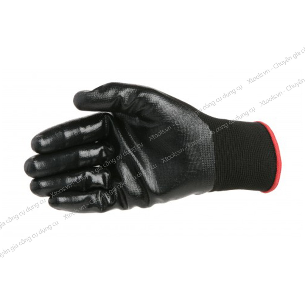- Lòng bàn tay được phủ lớp Nitrile dày 0,9mm. Thành phần Nitrile cực kỳ an toàn, không gây dị ứng cho người sử dụng.