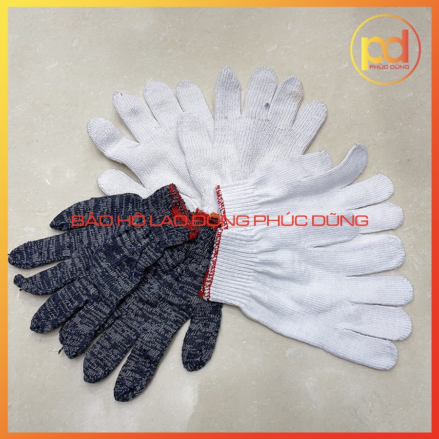 Găng tay bảo hộ lao động màu trắng dày dặn, găng tay làm vườn, chất liệu vải sợi polyester dệt bền bỉ