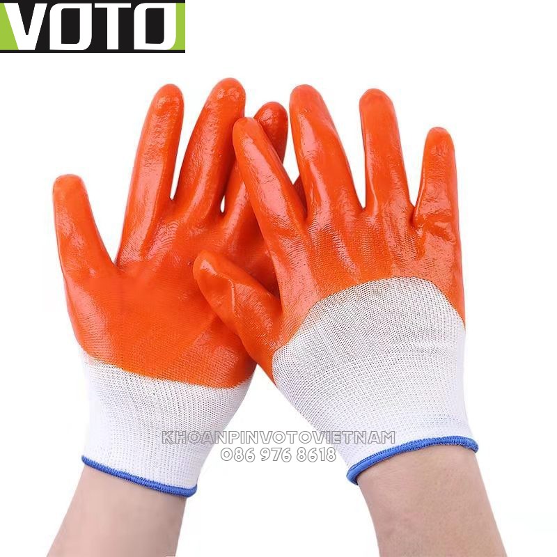 Giới thiệu Găng tay bảo hộ lao động phủ PVC màu cam VOTO