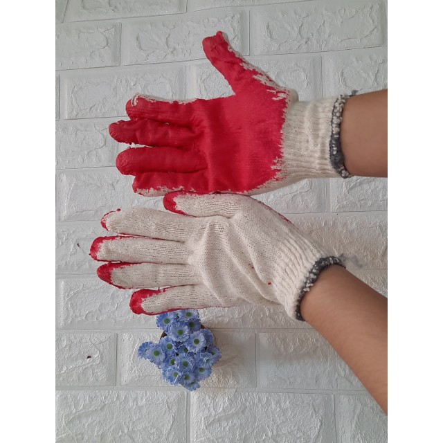 Găng tay bảo hộ lao động sợi len phủ cao su sơn đỏ chống cắt khi làm vườn bốc vác. Găng tay bảo hộ phủ sơn đỏ là găng tay bảo hộ lao động, được phủ sơn màu đỏ, chống cắt, chống đâm xuyên….Được sử dụng làm vườn, sắp xếp đồ đạc, bốc vác,...Găng tay sợi phủ sơn đỏ là găng tay bảo hộ lao động