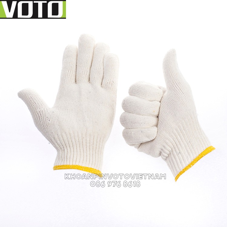 Găng tay bảo hộ loại len sợi trắng thoáng khí, bảo vệ tay VOTO viền màu vàng
