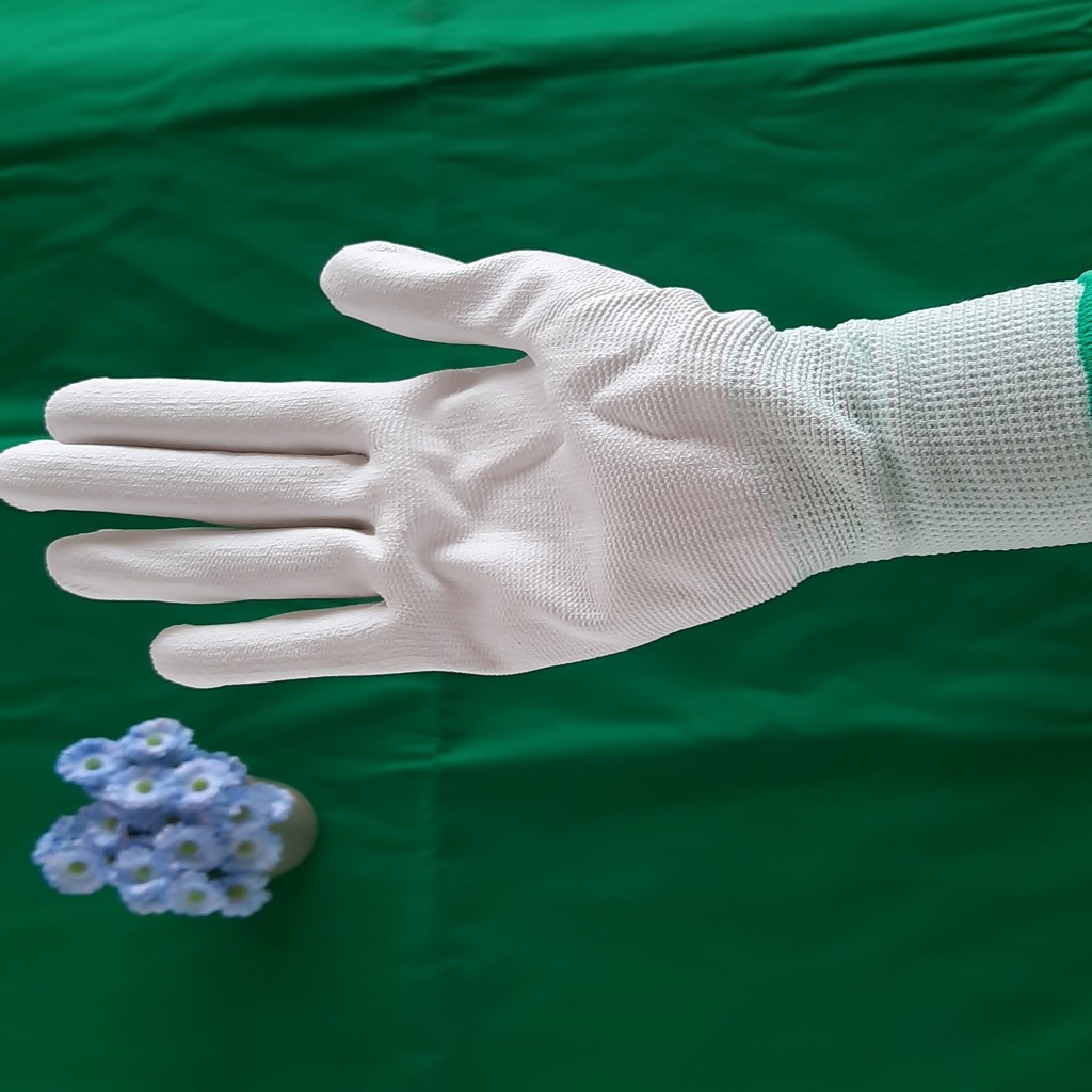 Giới thiệu Găng Tay Bảo Hộ Phủ PU Lòng Trắng Găng Tay Tĩnh Điện Phòng Sạch