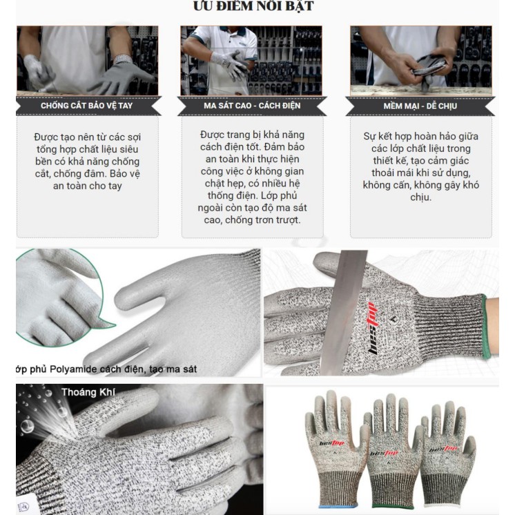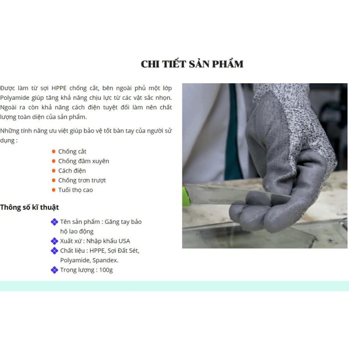 GĂNG TAY BẢO HỘ sợi HPPE an toàn cho lao động Chống cắt cách điện - HanruiOffical